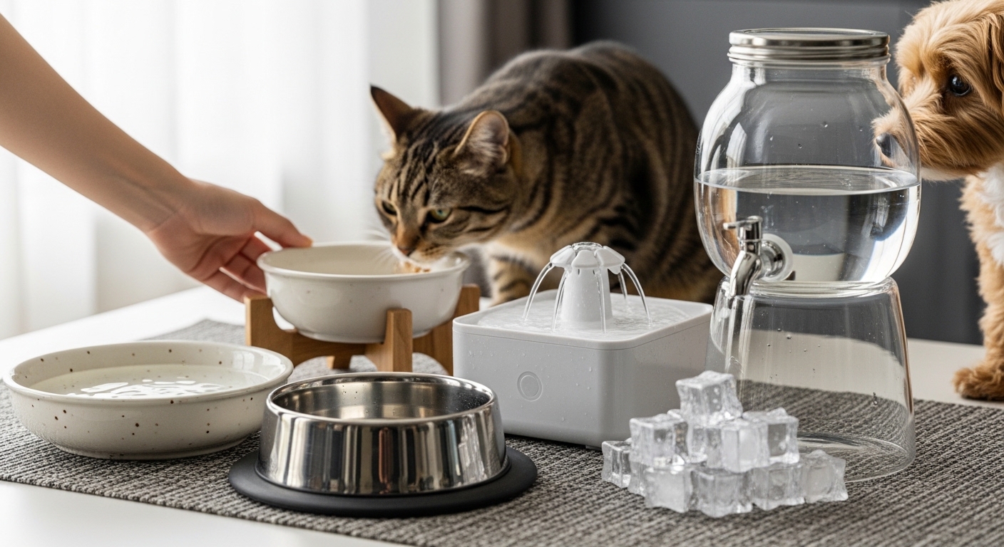 ペットの水飲み場をよくいる場所の近くに複数設置し、自分のマイボトルやグラスもデスク・リビング・寝室に配置します。「見える=思い出せる」環境を作りましょう。