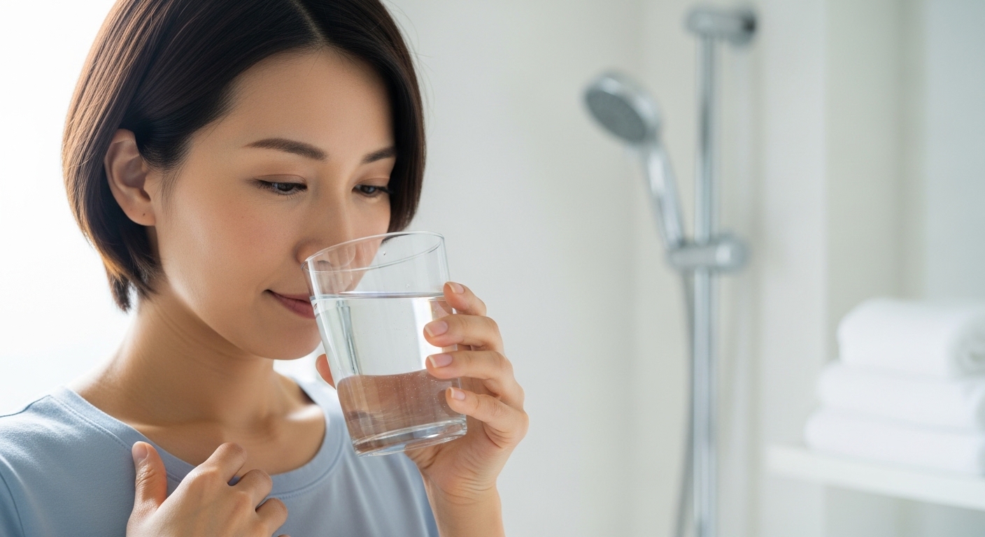 また、水の「量」だけでなく「質」にこだわることも、長い目で見ると体内環境を整えるうえで大切な視点です。 水道水には安全のために塩素が使われていますが、敏感な人ではニオイや味、体調への影響を気にすることもあります。 浄水器やミネラルウォーターを上手に活用し、「体の中を洗う水」を意識して選ぶことは、見えない未来の健康への投資とも言えます。