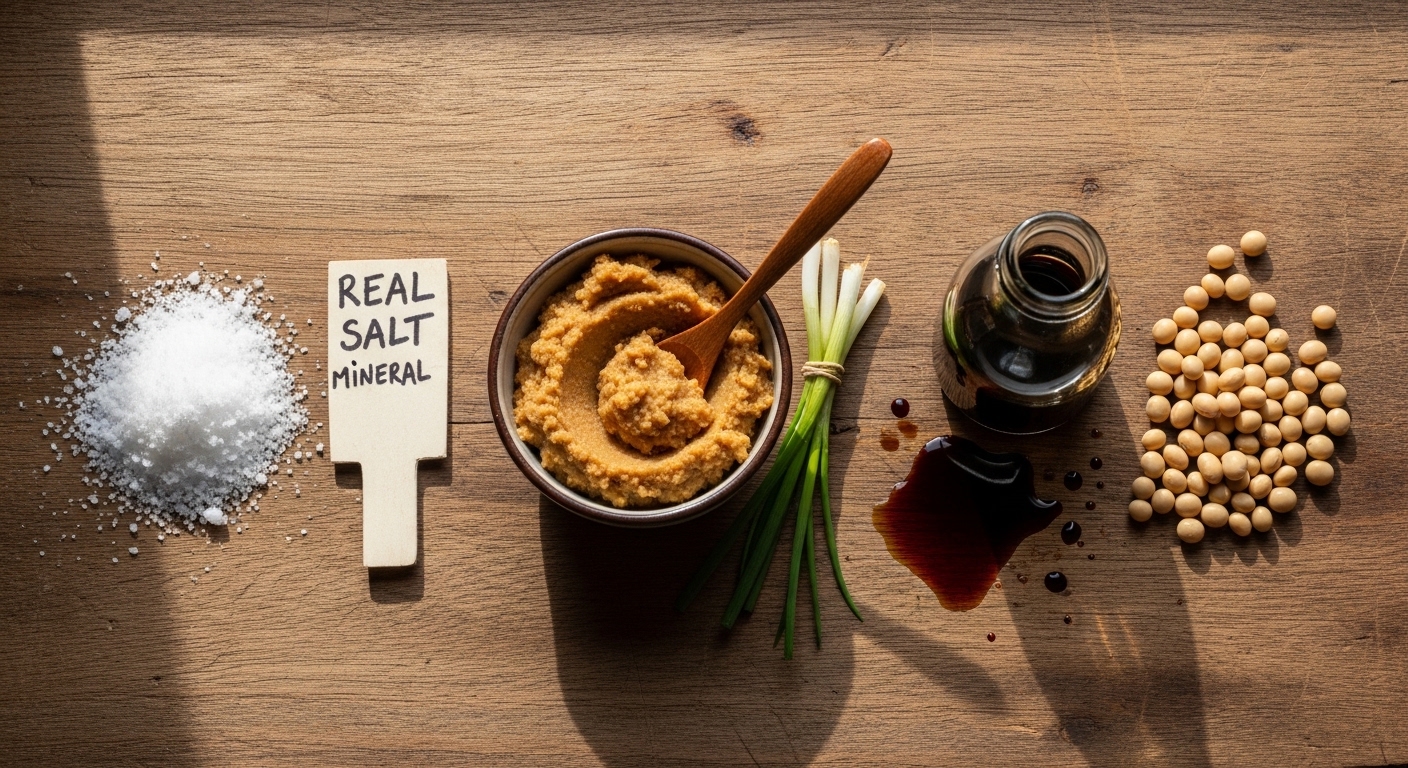 “濃い味+ご飯おかわり”が習慣になると、糖質と塩分のとり過ぎで体重増加、加工調味料・加工食品多めによる慢性炎症というルートで、関節への負担がじわじわ増えていきます。長期熟成の味噌・醤油やミネラルを含む自然塩は、うま味・コクが強く薄味でも満足しやすく、発酵による有機酸やペプチド成分が腸内環境や血流に良い影響を与える可能性があるとされており、「同じ塩分量なら、より少ない量で満足できる方向」に味覚を育ててくれます。