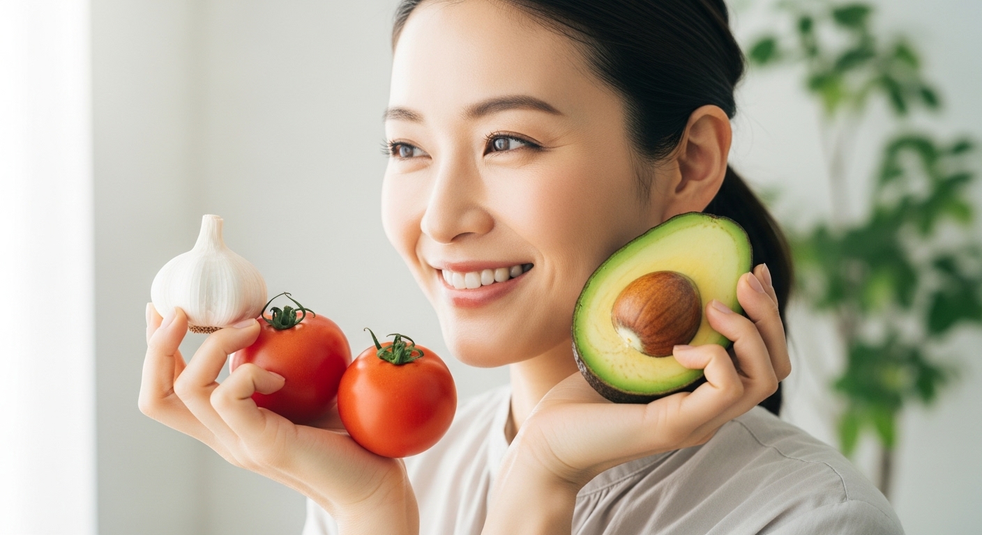 1️⃣ 口から入れるものに興味を持つ にんにく、トマト、アボカドなど、ファイトケミカルや食物繊維が豊富な食材を意識的に選びましょう。
